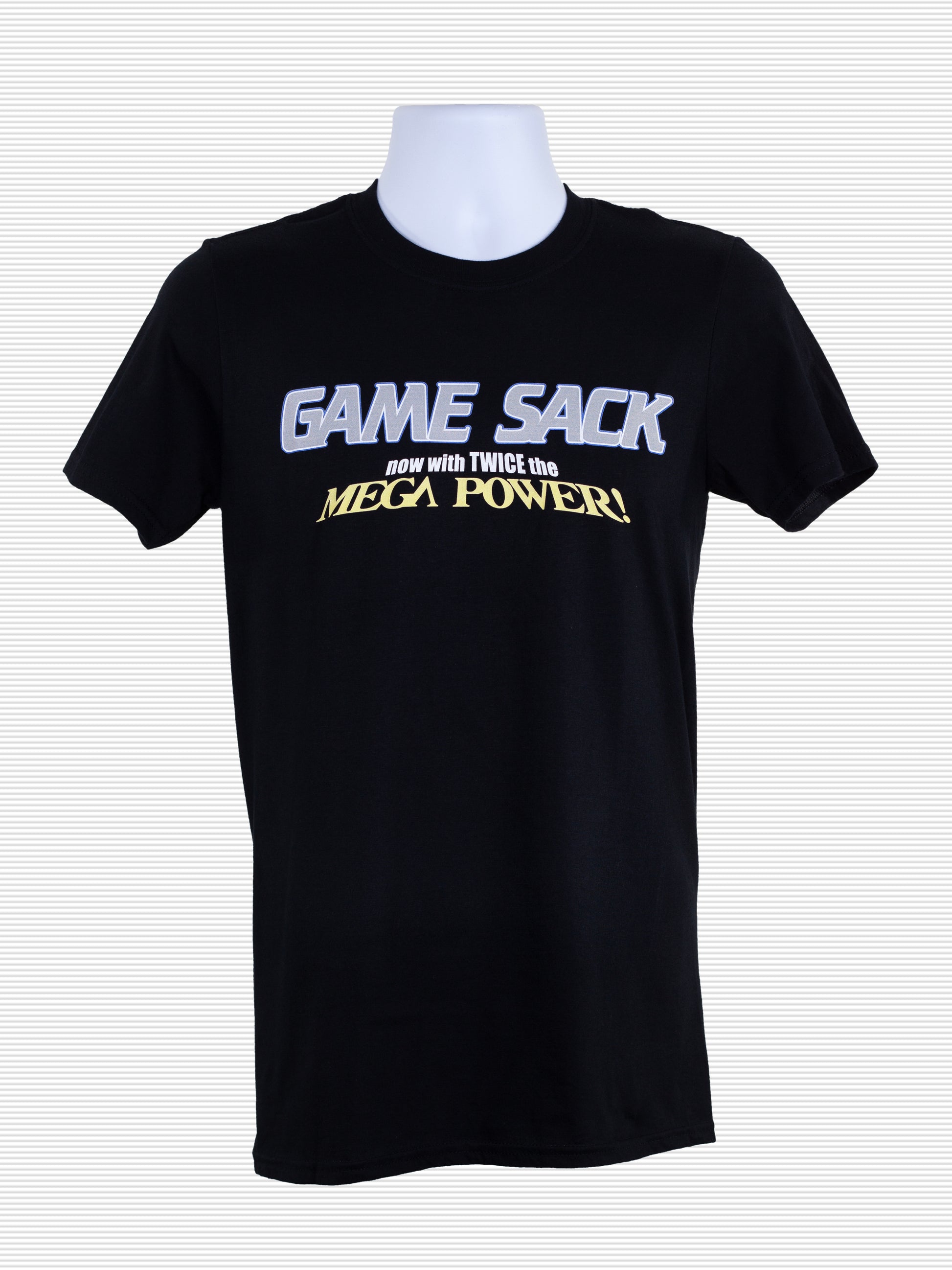 Now you're playing with power. MEGA POWER!!!! This exclusive shirt was designed by Joe himself and shows the world that you're a true Game Sack fan. Now the only question is Sega or Nintendo...