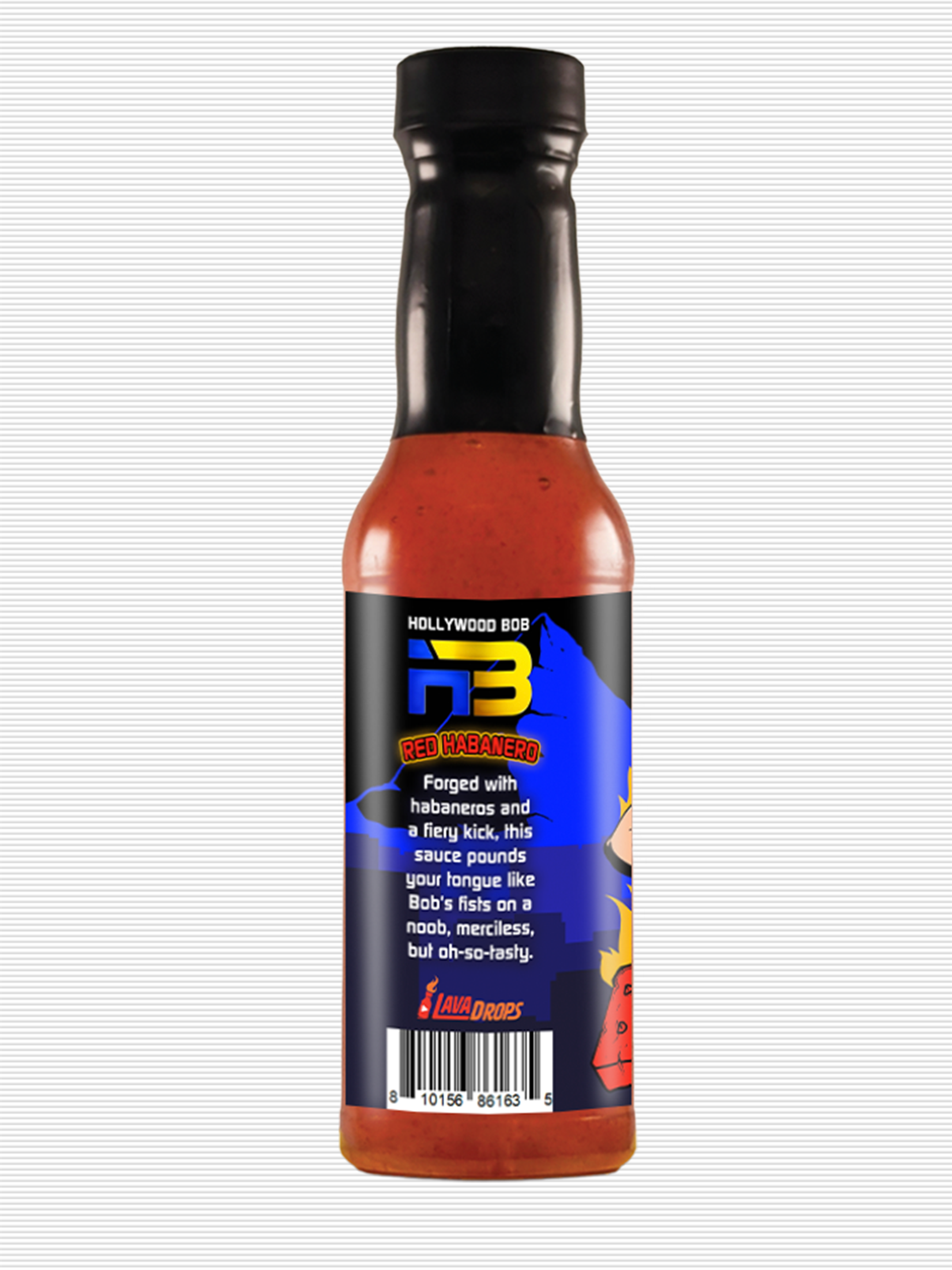 "Forged with habaneros and a fiery kick, this sauce pounds your tongue like Bob's fists on a noob, merciless, but oh-so-tasty."