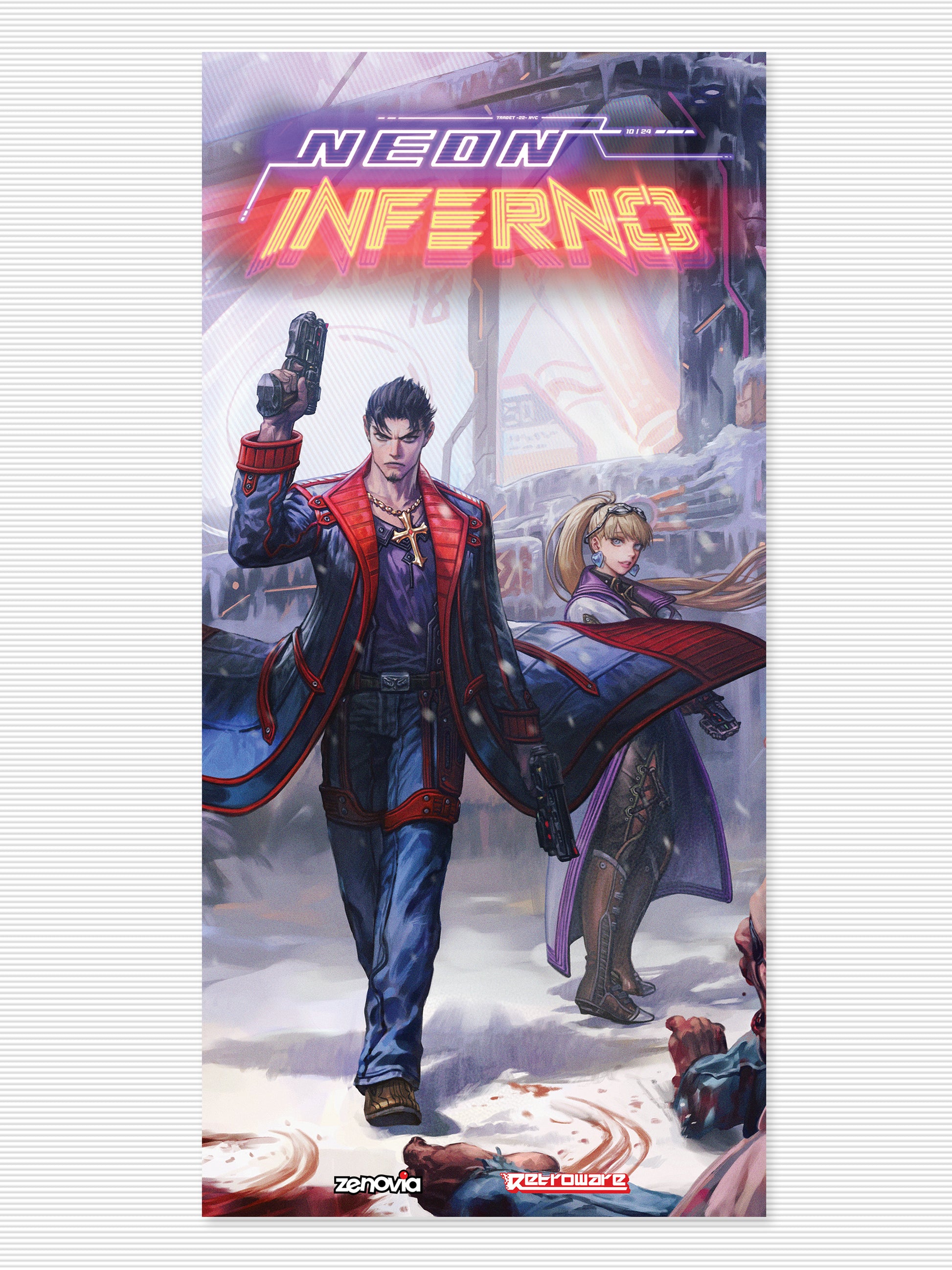 Snag our exclusive 11" x 23" NEON INFERNO poster—folded just like the ones that came in Nintendo Power. It's FREE, just pay shipping & handling. One side shows Angelo and Mariana fresh from a street fight in snowy NYC. Flip it for gritty tips on melting the game’s first boss.