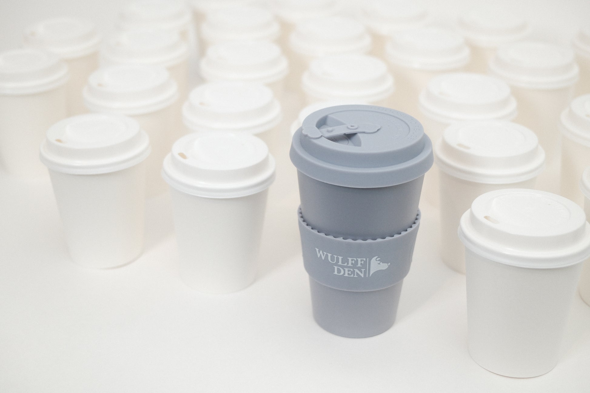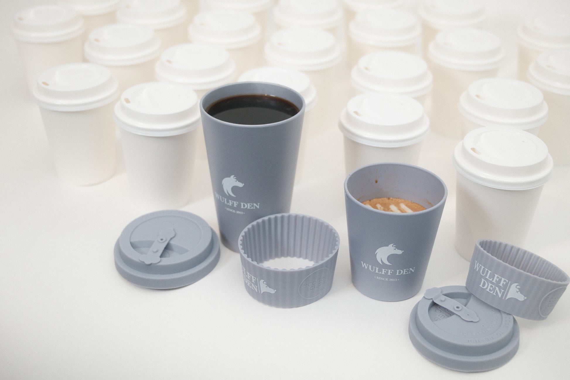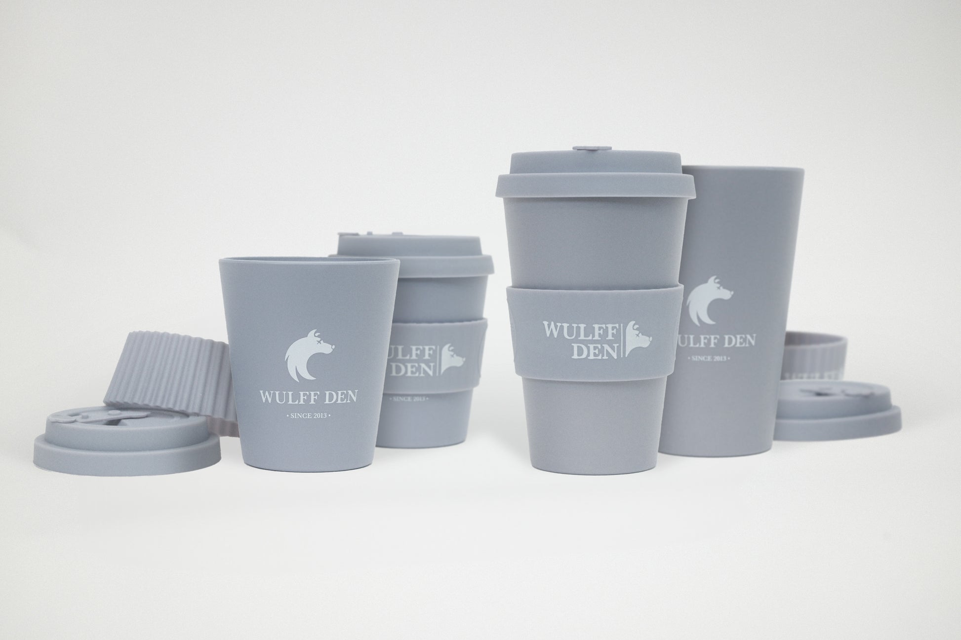 14oz coffee or 8oz espresso drink cups designed in collaboration with ECOFFEE. Made from PLA derived from sugar beet. Dishwasher safe, but it's safest in the top rack. Perfect for your drip coffee, keurig, or your espresso machine drinks.