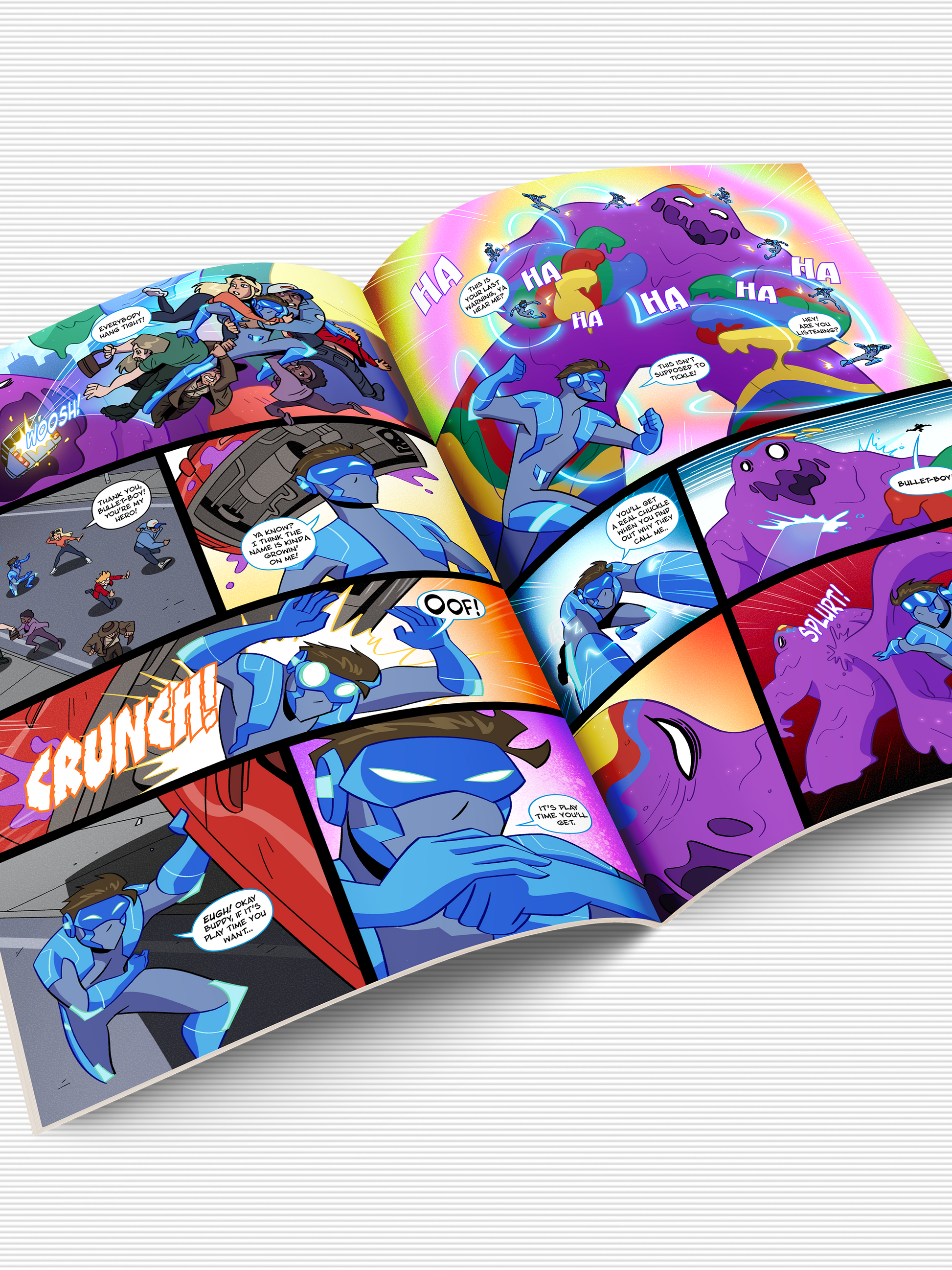Story: Every day, Josh McKeen grows more and more accustomed to his life as a full time superhero. But when a mishandled encounter creates new problems, he comes face-to-face with a villain molded from living clay. Bullet-Boy will need all the help he can get to save the city from this unstoppable threat, that gets bigger by the second!