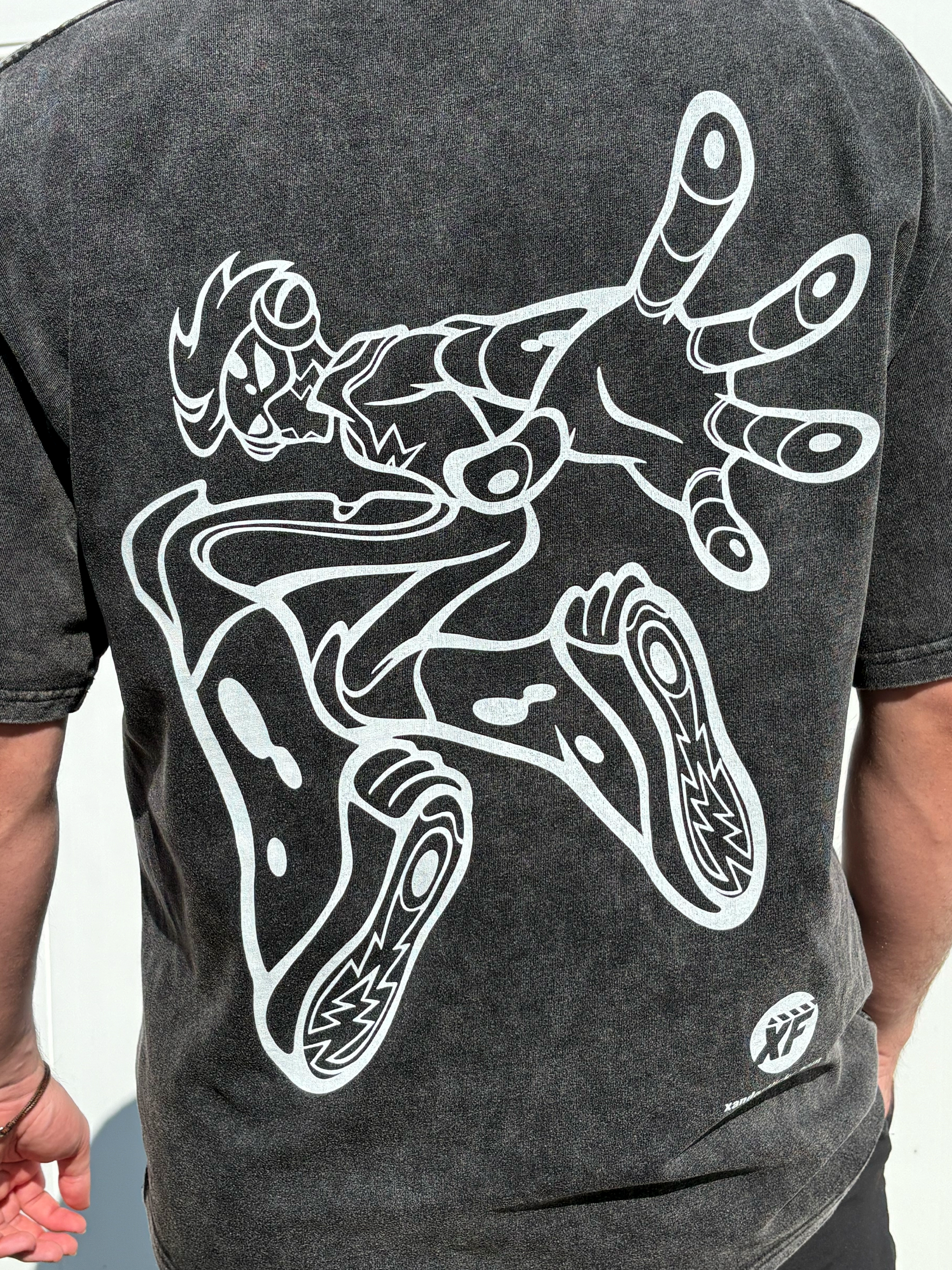 The Bullet Boy Y2K BB Shirt is a bold, double-sided tee with a streetwear vibe. The front features a vibrant Bullet Boy graphic with Y2K-inspired details, while the back showcases a clean white outline. Printed on a black snow-washed oversized cotton T-Shirt.